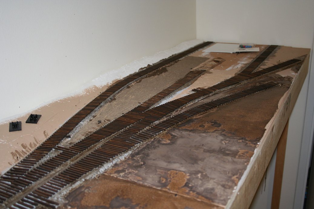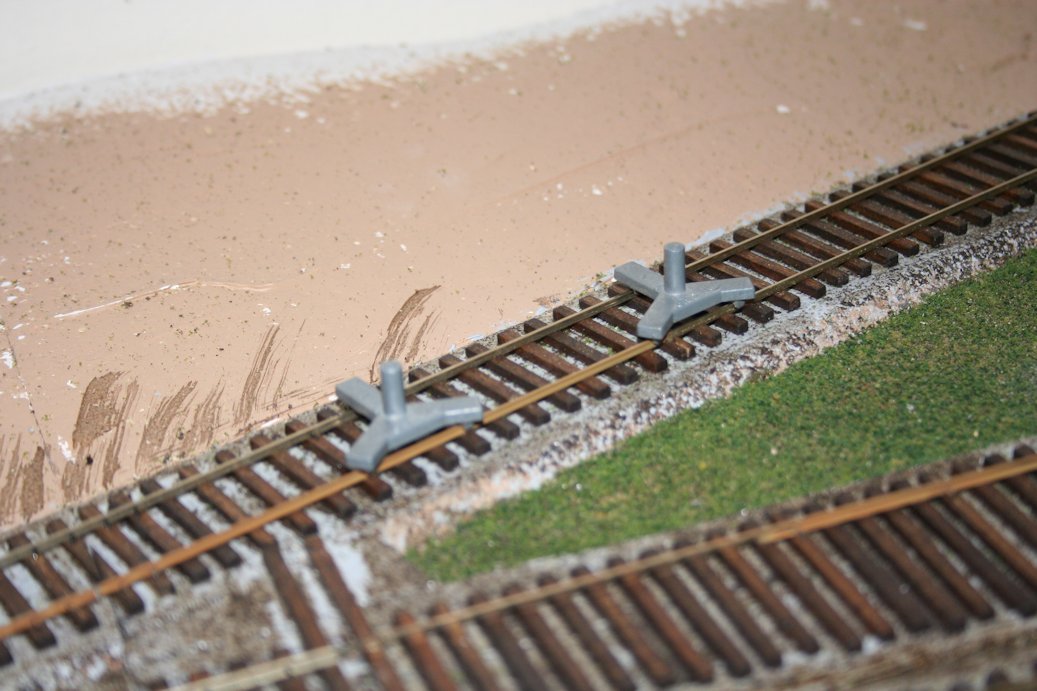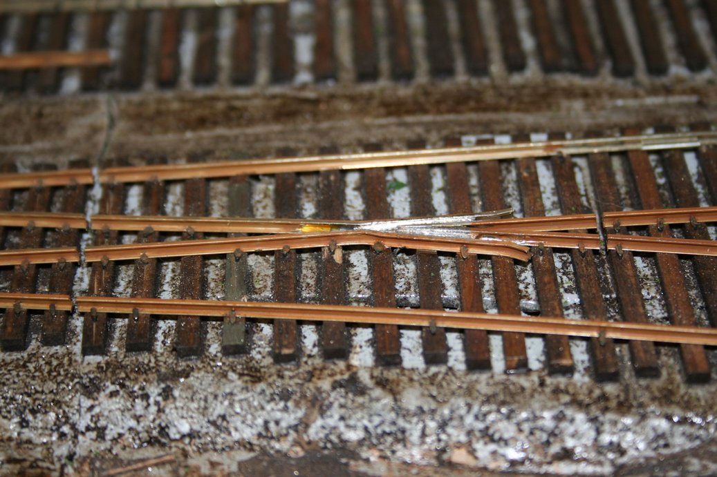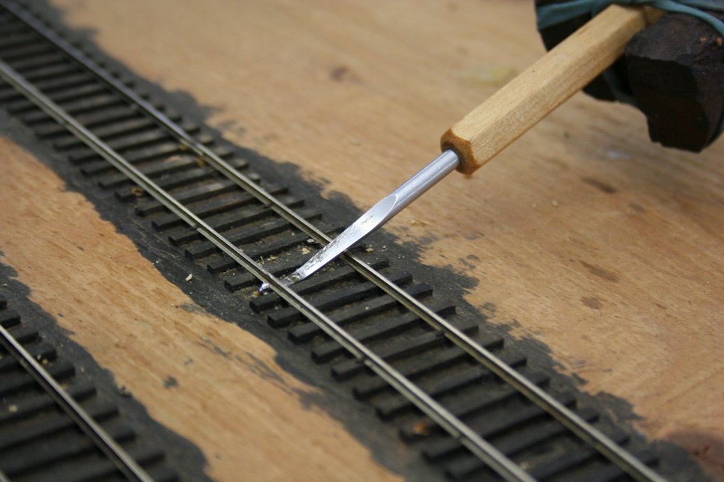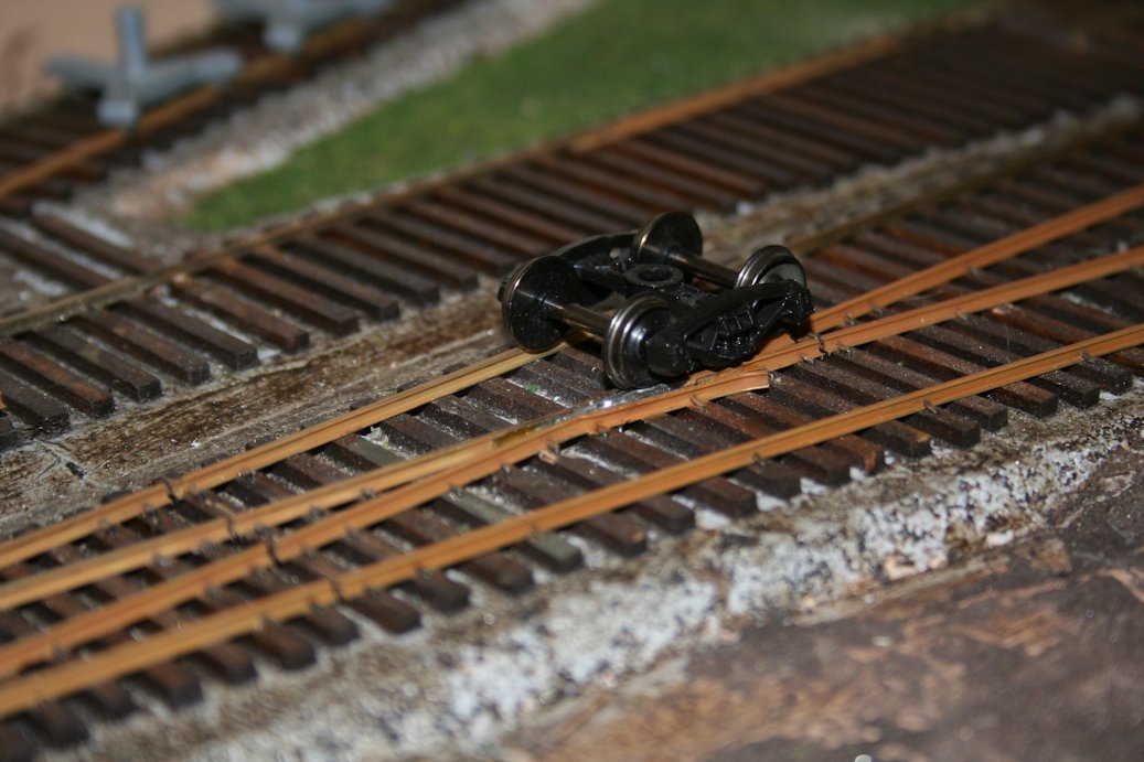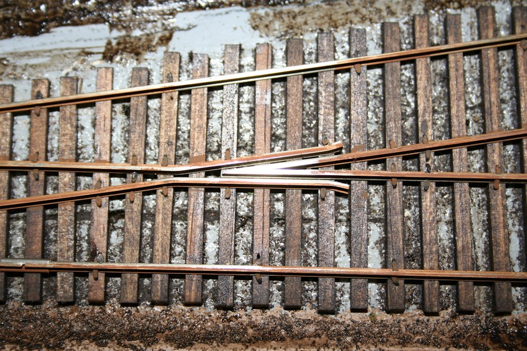 Solder wires to the bottom of the rail so they're less visible. Tin the wire first and use an aluminum soldering probe tool to press the wire firmly against the rail while soldering. (The bits of slag ballast used for weight is my technique to do this without a second person to hold the probe. You kinda need three hands for this.)