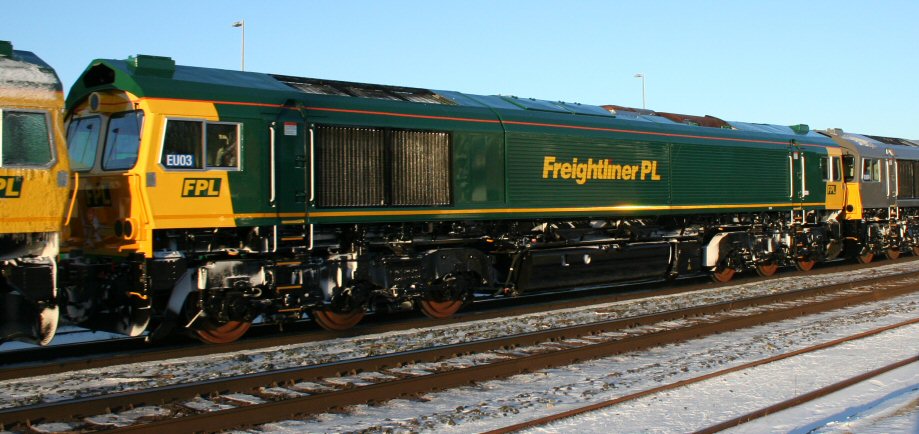 | This engine was one of the first new engines built for Freightliner's new startup operation in Poland (which is what the "PL" refers to). The lettering on this unit is not yet fully complete and it carries temporary builder's number tags in the cab window. This photo was also published in the March 2007 "The Railway Magazine." | |