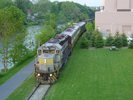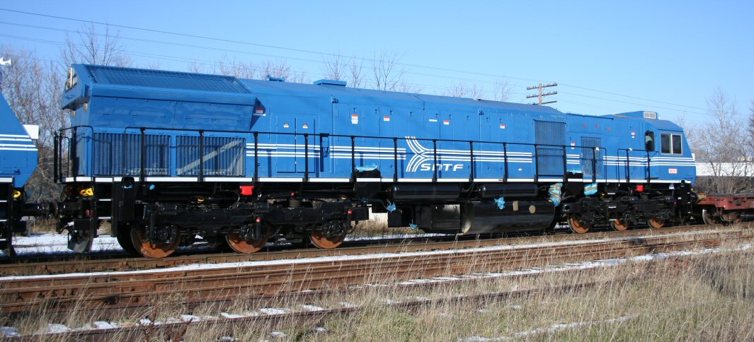 | A brand new GT36HCW export locomotive built by EMD in London, ON for SNTF (Société Nationale des Transports Ferroviaires) in Algeria passes through Guelph, ON. | |