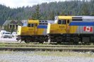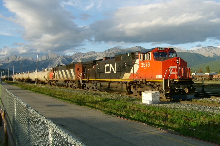 CN C44-9W 2573 and a SD50F waiting to head east out of Jasper, AB. |