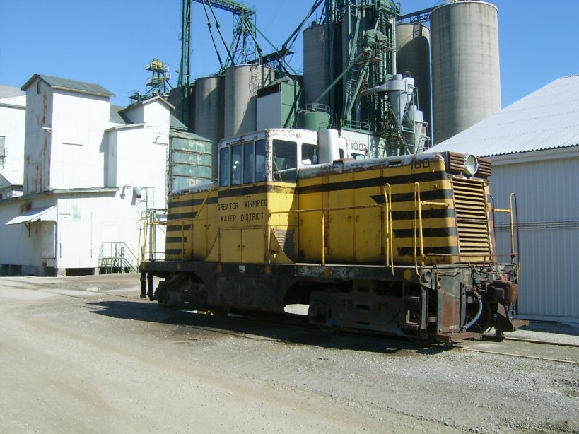 | Despite what the lettering on the side of the engine might suggest, this photo was not taken anywhere near Winnipeg. Former GWWD 44-tonner 100 now performs its duties shuffling cars of grain and fertilizer at the W.G. Thompson's elevator complex at Blenheim, ON. | |