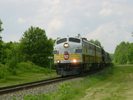 As part of the rare mileage excursion, the train made an unprecendented trip up the Guelph Junction Railway into Guelph. Here it is passing through Moffat on it's way into Guelph. |