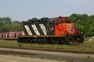 CN GP9Rm 4118 switches cars in Brantford Yard. September 6, 2004. |